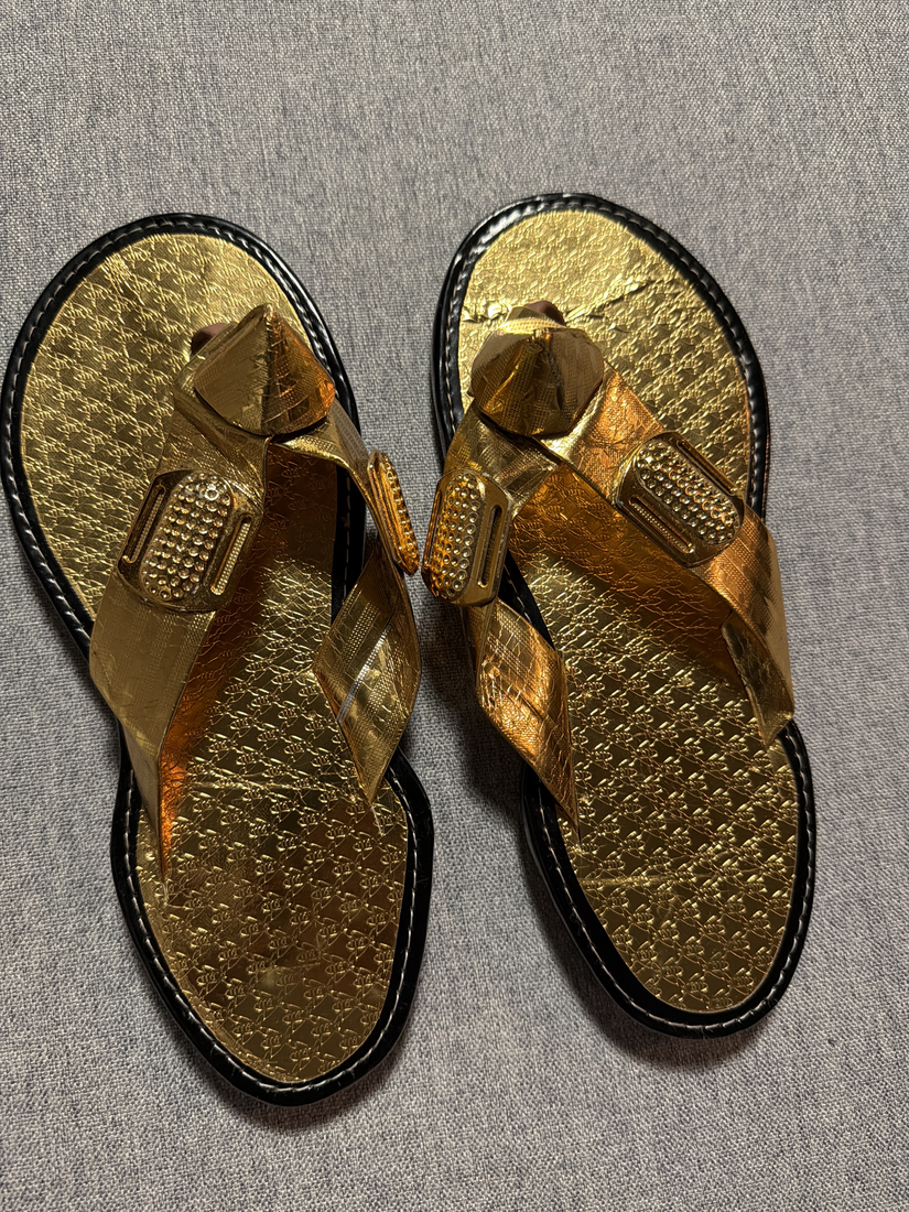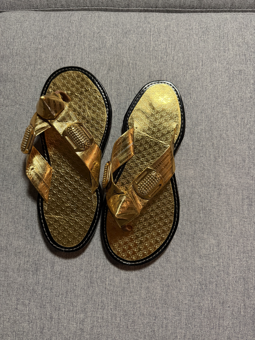 Cultural Significance: Gold has long symbolized wealth, prestige, and celebration in West African traditions. In Côte d’Ivoire, golden tones are often associated with special occasions and status, making these sandals a statement of elegance and cultural pride. The craftsmanship reflects the skill and creativity of local artisans who blend traditional aesthetics with contemporary fashion.