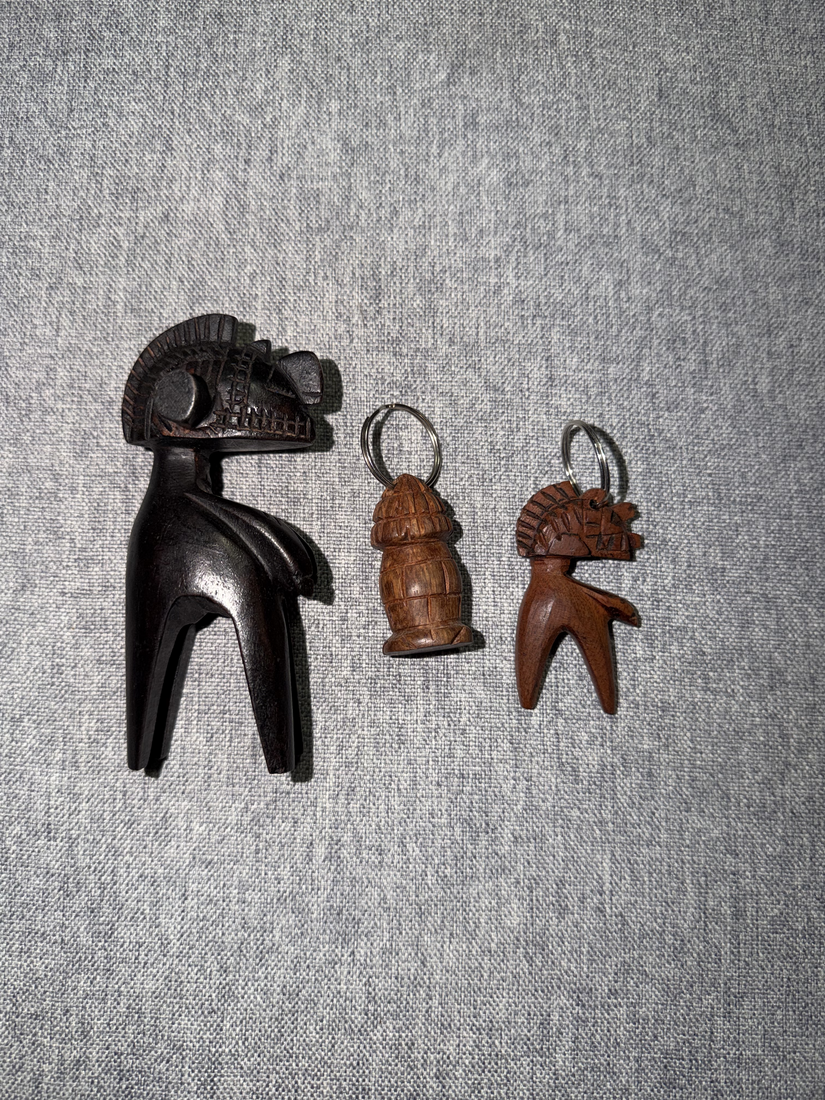 - Cultural Significance: The Nimba is an iconic figure in Guinea’s Baga culture, symbolizing fertility, prosperity, and community well-being. Traditionally, Nimba statues were used in ceremonies to bless harvests and protect families. These smaller versions carry the same cultural essence, making them meaningful keepsakes. Key holders carved from wood are not only practical but also represent the artisan’s skill and the importance of everyday objects in African art traditions.
