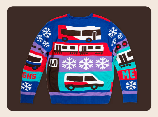 This isn’t just a sweater—it’s a first-class ticket to holiday cheer! Inspired by the hustle and bustle of the Metro and sprinkled with sleigh bells, this cozy knit combines the spirit of transportation with the magic of the season. Whether you’re dashing through the snow or cruising down the tracks, you’ll look merry and bright while supporting a great cause. And remember that all proceeds benefit KCF, helping us deliver joy far beyond the station.