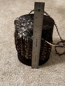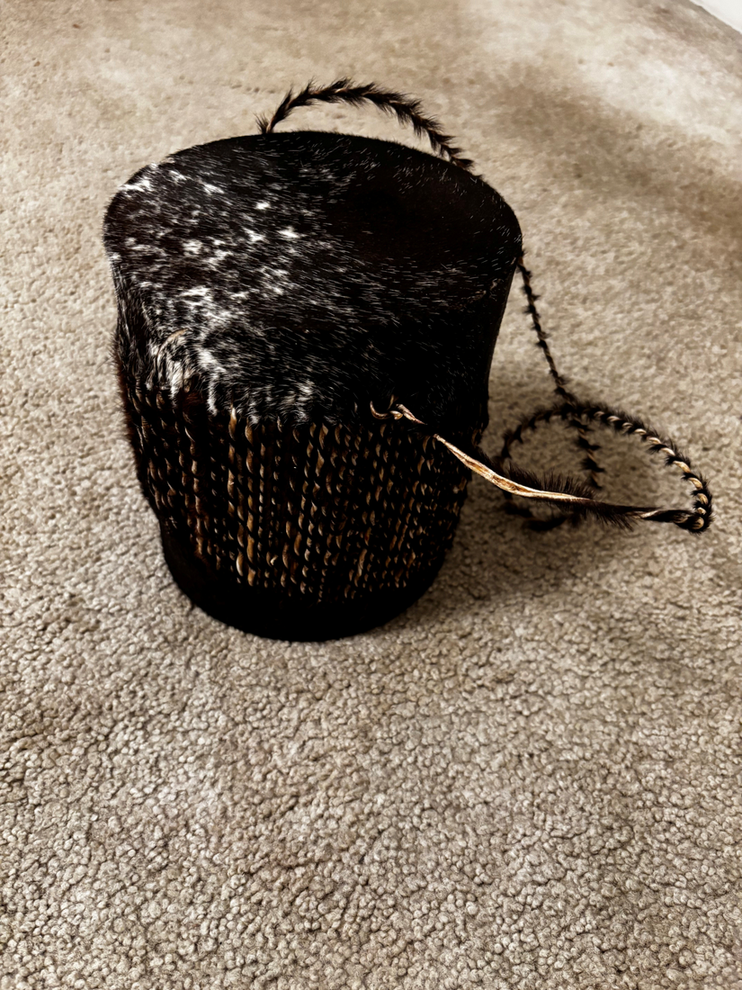 Back to ItemsBring home a piece of authentic African heritage with this Vintage Small Zulu Drum, an example of tribal folk art. This drum features a traditional design made from natural animal hide stretched over a wooden frame, showcasing the raw beauty and cultural significance of African music traditions. Its compact size makes it perfect for display as a decorative art piece or for use in creating rhythmic beats that echo centuries of storytelling and celebration. Whether you’re a collector of world instruments, a lover of folk art, or seeking a unique conversation piece, this drum embodies history, craftsmanship, and soul.