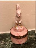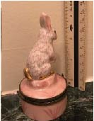 The Limoges box offered in this auction features a Herend-style rabbit. The box has been hand-painted and signed TY, and it is about 3 inches in height.