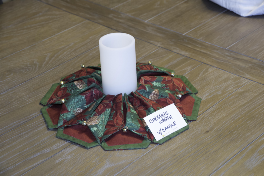 Back to ItemsHere is a great home decoration for the upcoming Christmas holidays! This Christmas Candle Wreath is a handmade quilt wreath - candle included!